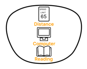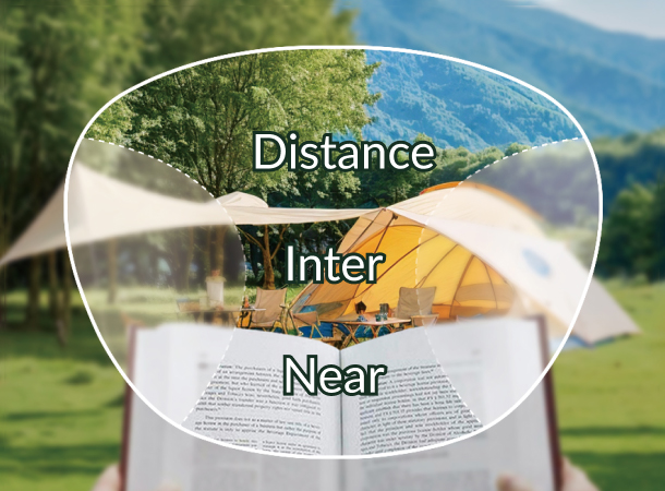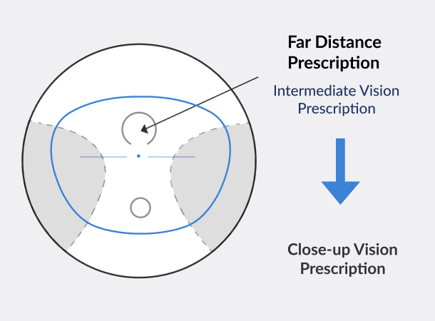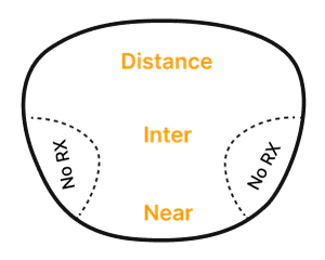 Progressives ( or multifocals, no-line bifocals ) are essentially three prescriptions in one lens so you get a clear view at multiple ranges: distance, mid-range and near with no visible line on the lens. Although you get the benefit of having no line in your lenses, progressives will have areas of distortion on either side of the lens.